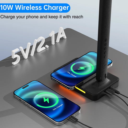 Desk Lamp, LED Desk Light with Wireless Charger, Dimmable Eye-Protecting Smart Lamp with Night Light, Kids for Study Reading