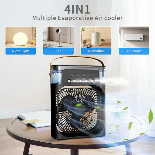 Portable Air Conditioner Fan, 3-IN-1 Personal Air Cooler, 3 Speeds, 7-Color Night Light, USB Powered Cooling Fan, Mini Evaporative Air Cooler for Room Desk Car, Black