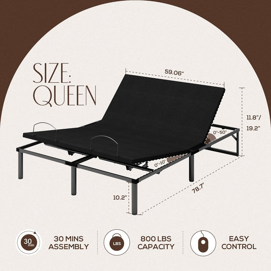 Queen Adjustable Bed Frame, Electric Bed Base with Wired Remote, Assembly Needed, Black