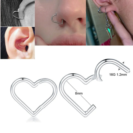 16G Stainless Steel /Titanium Nose Ring for Women Daith Piercing Earrings Hoop Heart Clicker Helix Cartilage Tragus Body Jewelry
